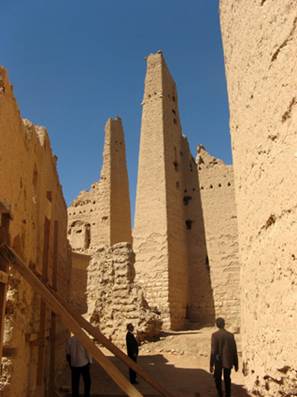 Dirriyah is a large, walled, earth city that was once the thriving first capital of Saudi Arabia before its destruction by the invading Egyptian army in 1818. The buildings have survived in various stages of ruin since that time with some areas of 20th Century reoccupation. Some buildings have recently been restored and/or reconstructed. The majesty of some of the buildings can still be understood with their high fortified walls still standing tall whilst others have crumpled to the ground.
